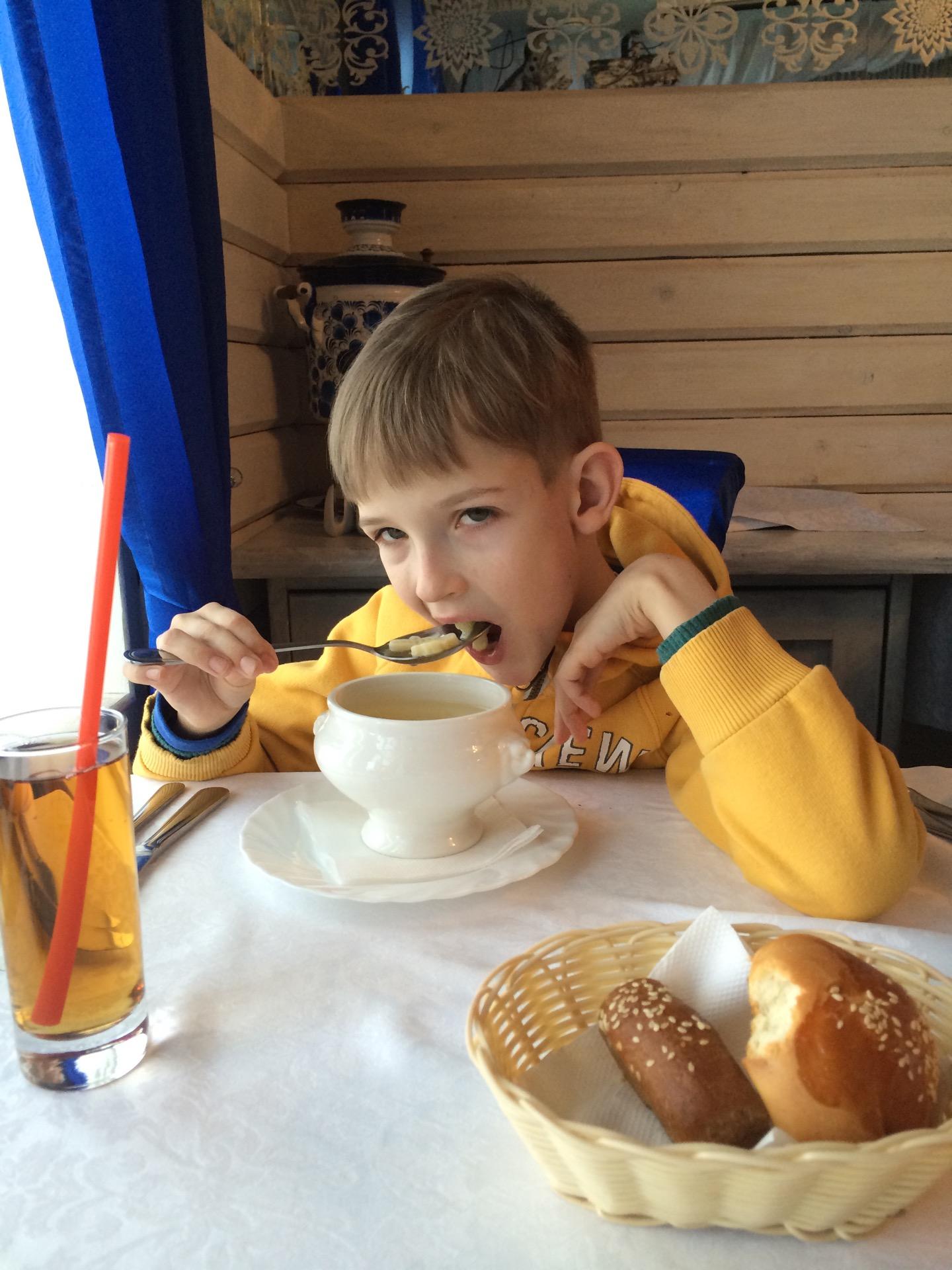 Ordering the Sterlet Fish Soup served with vodka in an ice cold shot glass!