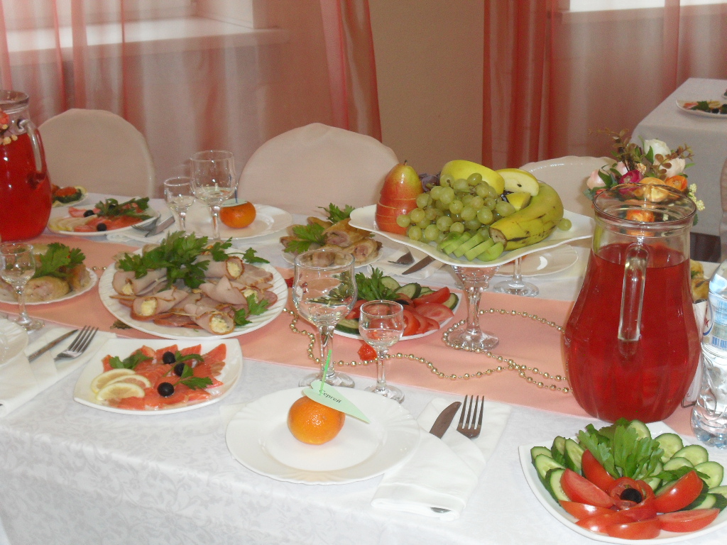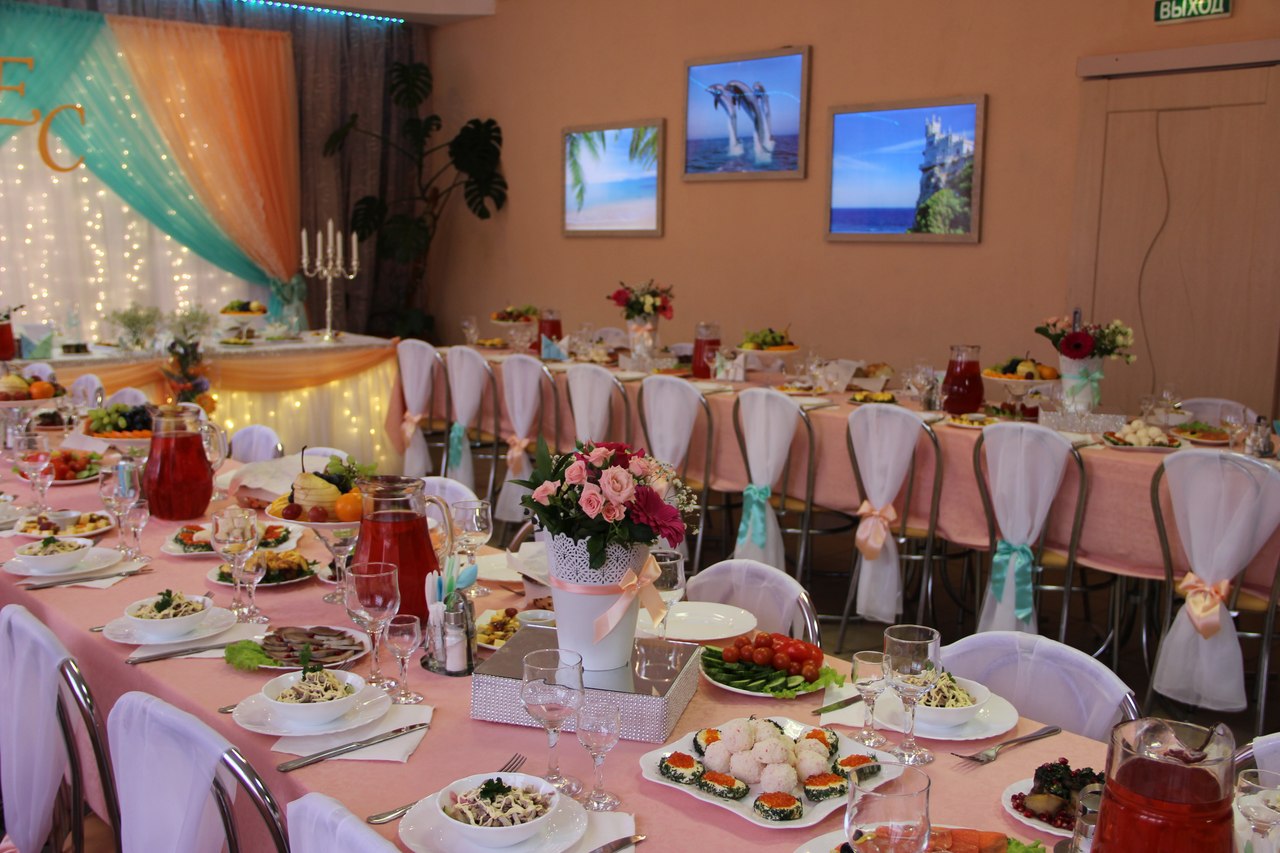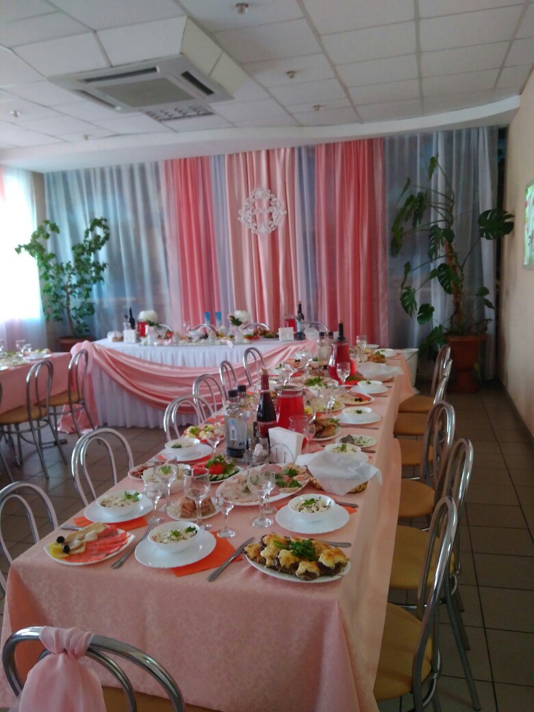 В меню представлены блюда русской и европейской кухни. Свежие салаты с сыром, куриной грудкой, грибами, морепродуктами, ягодами и фруктами. Классические «Цезарь» и «Греческий», люля-кебаб, фаршированные окорочка, семга, запеченная в фольге прекрасно дополняют друг друга. Вкусно и от всей души! Банкеты Свадьбы Юбилеи Если вы решили отметить свой юбилей, красиво оформить свадебный стол или пригласить друзей на весёлую вкусную вечеринку – мы поддержим любые ваши планы. Приглашаем Вас в уютный зал, красиво украшенный цветами и тканями. Зал подсвечен светодиодными лампами, на столах хорошего качества скатерти, главный стол оформлен фуршетной юбкой, а также композицией из цветов, зал не требует дополнительного украшения для банкета, но желающие могут украсить свой праздник шарами. При заказе свадьбы КАРАВАЙ В ПОДАРОК. По желанию клиента предоставляются: рушник, свадебные бокалы. Приходите, мы будем рады Вас видеть! Cтоловая «Праздник вкуса М» – это место для тех, кто ценит комфортный отдых, уютную атмосферу и качественную кухню. ОТДЫХАЙТЕ СО ВКУСОМ!